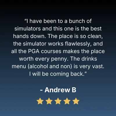 Tour-grade TrackMan and GSPro simulators, a full lounge vibe, expert coaching, and flexible booking for golfers of all levels!