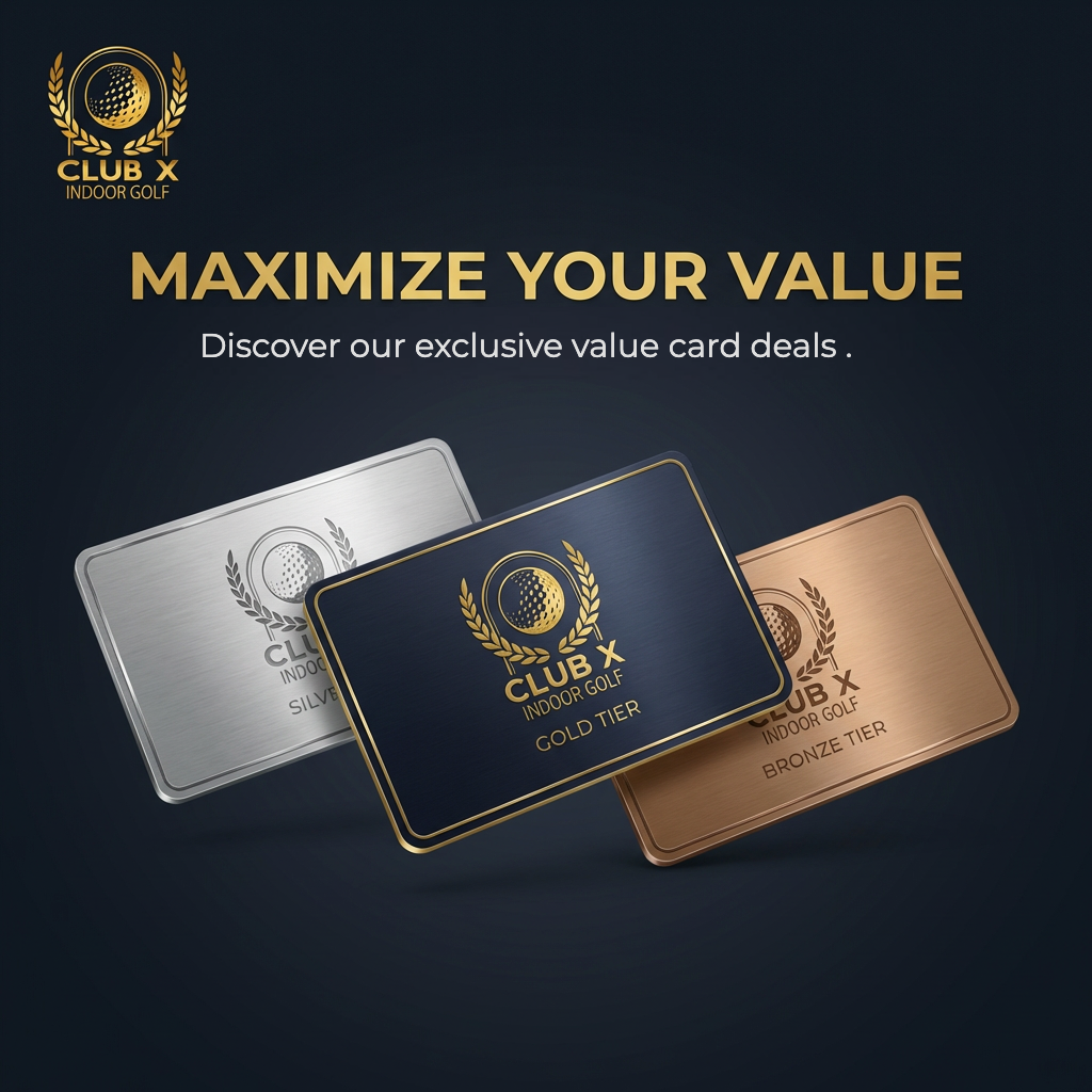 Stop paying full price. Start getting more out of every visit. Grab your Club X Value Card today and make every session, lesson, and round count. Your game — and your wallet — will thank you.